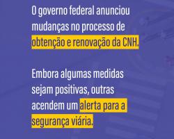 O Conselho Federal de Psicologia (CFP) está mobilizado e em articulação com o Poder Executivo e o Legislativo diante das recentes mudanças anunciadas pelo governo federal no processo de obtenção e renovação da Carteira Nacional de Habilitação (CNH).