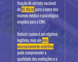 Entre as medidas, preocupa a fixação de um teto nacional de R$ 180,00 para o conjunto dos exames de saúde – médico e psicológico – exigidos para a habilitação. Essa decisão pode comprometer a qualidade das avaliações, a atuação profissional na Psicologia do Trânsito e, sobretudo, a segurança no tráfego.