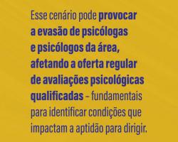 Diante desse cenário, o CFP encaminhou ofício ao Ministério dos Transportes e à Secretaria Nacional de Trânsito (Senatran), solicitando reunião técnica para dialogar sobre a medida e reafirmar que a avaliação psicológica é uma ação essencial de proteção à vida.