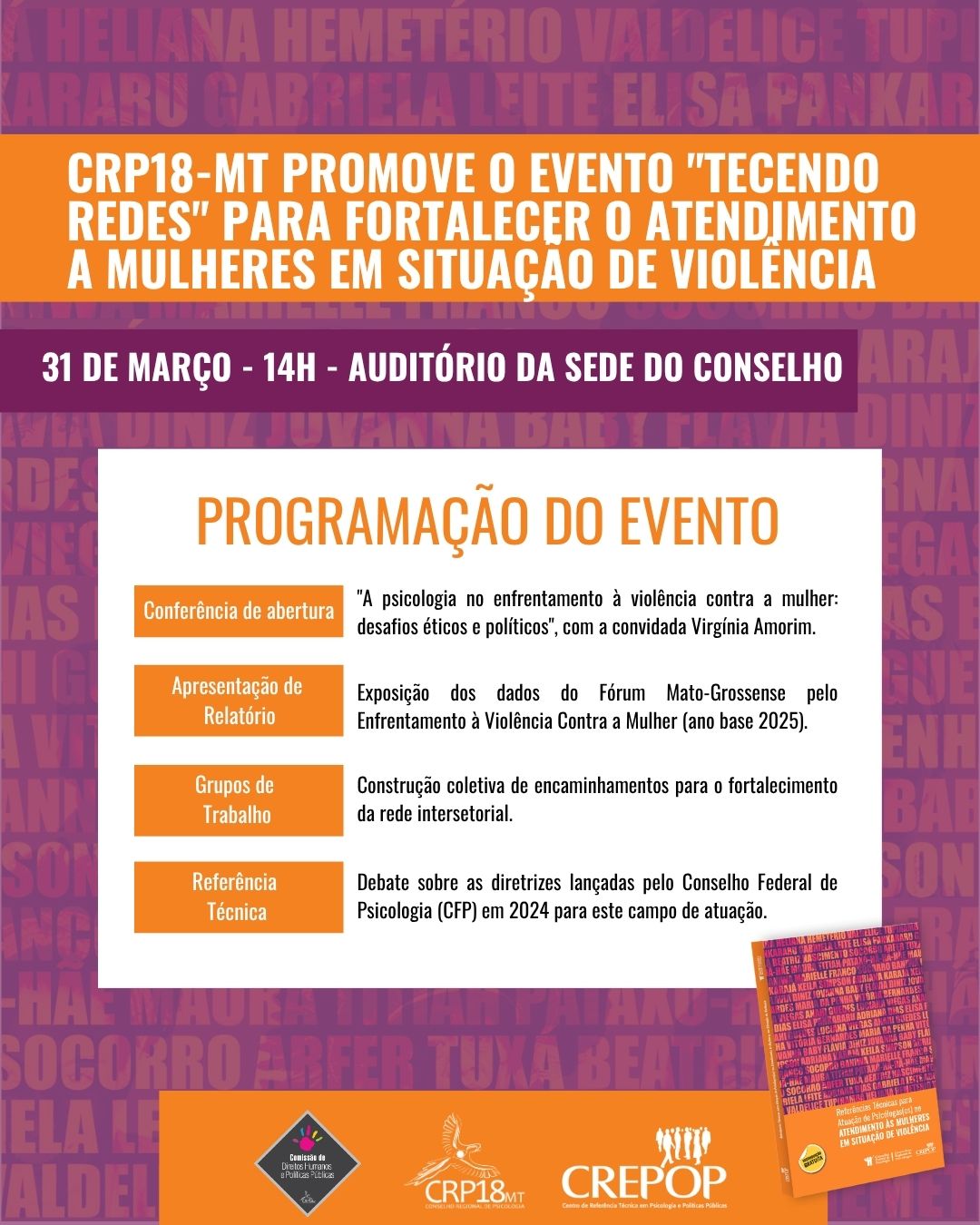 Com esta iniciativa, o CRP18-MT reafirma seu compromisso ético-político com a qualificação profissional e com a garantia de direitos humanos das mulheres em Mato Grosso.