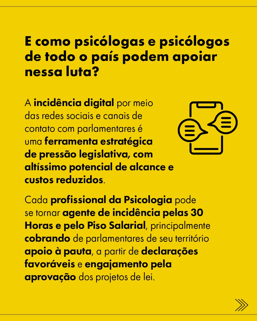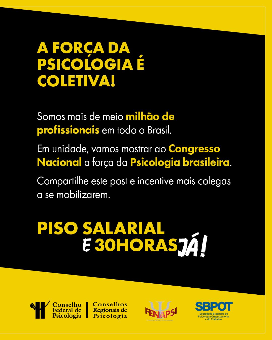 A campanha ressalta ainda a dimensão coletiva desse movimento, destacando que a Psicologia reúne mais de meio milhão de profissionais em todo o Brasil, o que amplia o potencial de pressão social e legislativa, especialmente quando há mobilização unificada e contínua.