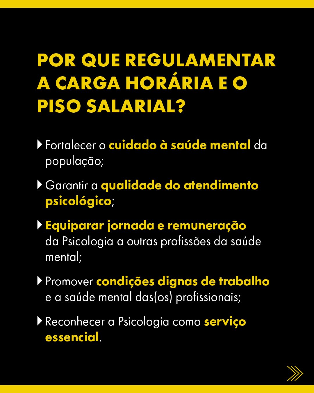 A pauta parte do reconhecimento de que condições dignas de trabalho impactam diretamente a qualidade dos serviços prestados à população. Entre os objetivos centrais da regulamentação estão fortalecer o cuidado à saúde mental, garantir a qualidade do atendimento psicológico, equiparar jornada e remuneração da Psicologia a outras profissões do campo da saúde, além de promover melhores condições de trabalho e reconhecer a Psicologia como serviço essencial.