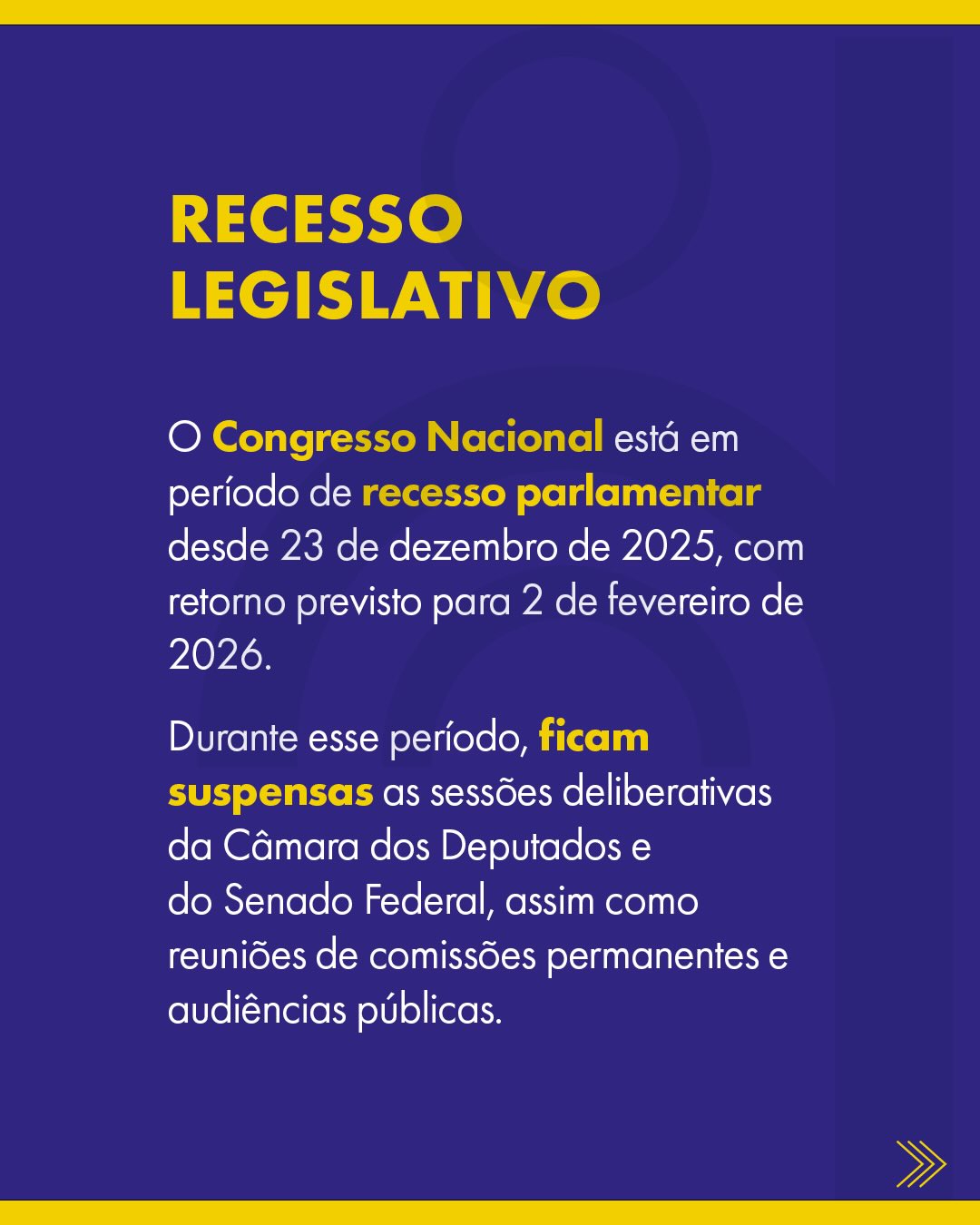 Mesmo durante o período de recesso legislativo, a mobilização é mantida. Conforme informado na campanha, o Congresso Nacional entrou em recesso desde 23 de dezembro de 2025, com retorno previsto para 2 de fevereiro de 2026, período em que ficam suspensas sessões deliberativas e reuniões de comissões permanentes. Ainda assim, a orientação é que profissionais sigam utilizando a plataforma e as redes para sustentar a incidência política e manter o tema em evidência.