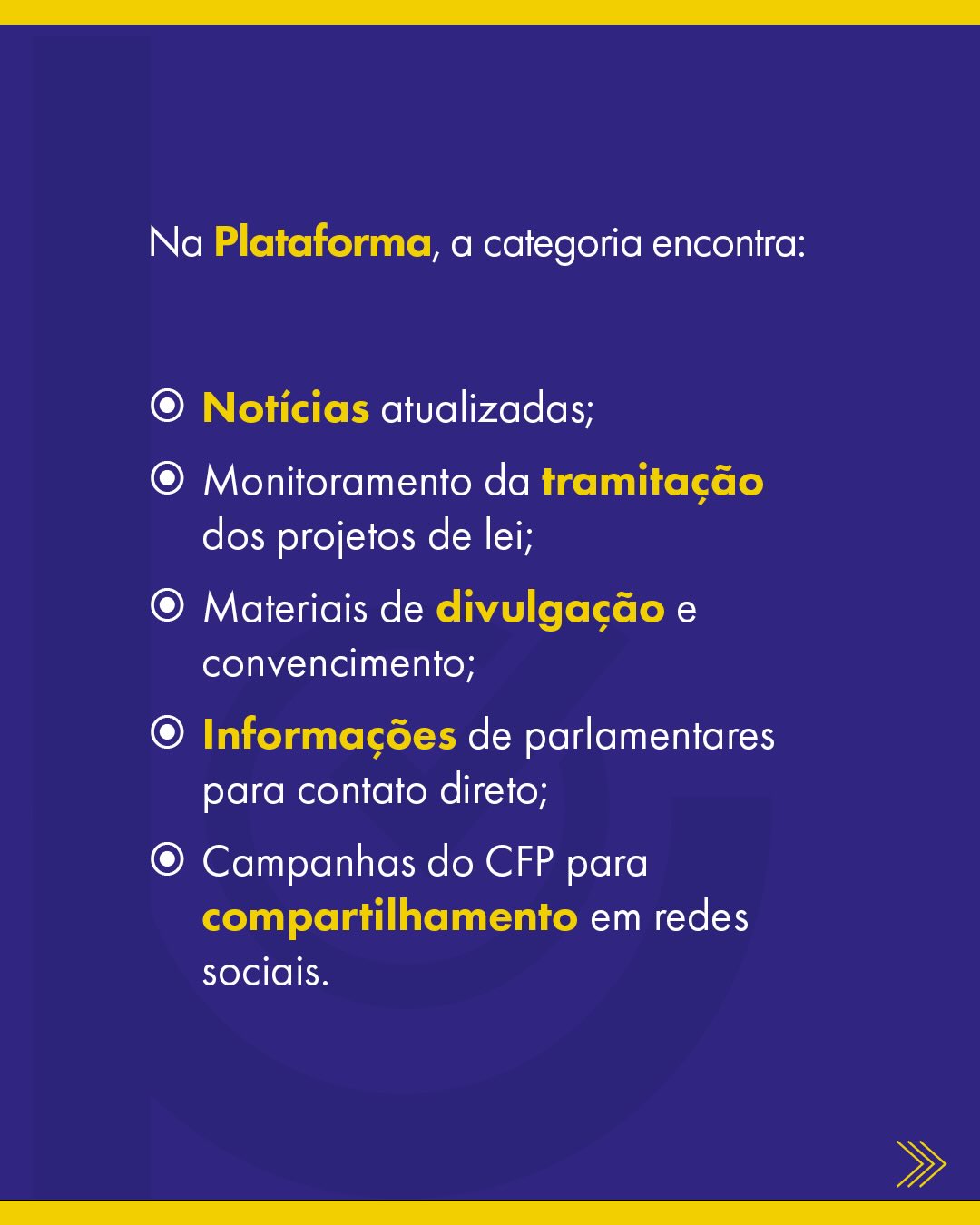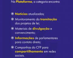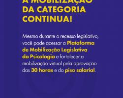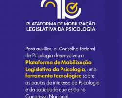 Para apoiar essa atuação, foi desenvolvida a Plataforma de Mobilização Legislativa da Psicologia, ferramenta tecnológica que reúne conteúdos e recursos voltados às pautas em tramitação no Congresso Nacional. Na plataforma, a categoria encontra notícias atualizadas, monitoramento da tramitação de projetos de lei, materiais de divulgação e convencimento, informações de parlamentares para contato direto e campanhas para compartilhamento em redes sociais.