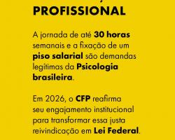A luta pela valorização da Psicologia brasileira ganhou novo impulso com a mobilização nacional em defesa da fixação de um piso salarial e da regulamentação da jornada semanal de até 30 horas para psicólogas e psicólogos. Em 2026, o Conselho Federal de Psicologia (CFP) reafirma seu engajamento institucional para que essas demandas históricas avancem no Congresso Nacional e se consolidem como Lei Federal.