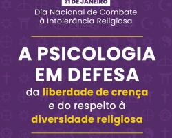 No Dia Nacional de Combate à Intolerância Religiosa (21 de janeiro), o Conselho Regional de Psicologia da 18ª Região (CRP18-MT) destaca que a Psicologia, enquanto ciência e profissão, sustenta um compromisso ético, científico e político com a defesa da liberdade de crença e com o enfrentamento de toda forma de discriminação, estigmatização ou preconceito religioso, em consonância com o Código de Ética Profissional e com os marcos nacionais e internacionais de garantia de direitos.