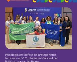 O Conselho Regional de Psicologia da 18ª Região (CRP18-MT) saúda a participação da Psicologia na 5ª CNPM e reitera seu compromisso em orientar, fiscalizar e qualificar a atuação profissional no estado, articulando-se com redes de proteção e instâncias de controle social para garantir direitos e enfrentar todas as formas de violências contra mulheres, crianças e adolescentes. Psicólogas(os) de Mato Grosso que desejarem acessar as referências técnicas citadas e incorporar as diretrizes da conferência em seus contextos de trabalho podem contar com os canais oficiais do Conselho e com suas comissões temáticas para suporte técnico e ético contínuo.