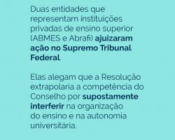 O argumento é de que a normativa extrapolaria a competência do Conselho por supostamente interferir na organização do ensino e na autonomia didático-científica das universidades.