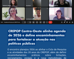 As equipes técnicas do Centro de Referência Técnica em Psicologia e Políticas Públicas (CREPOP) da Região Centro-Oeste participaram, na segunda-feira, 19 de janeiro de 2026, de uma reunião trimestral online, com foco no alinhamento de informes regionais e na definição de encaminhamentos práticos para o trabalho em rede ao longo do ano.